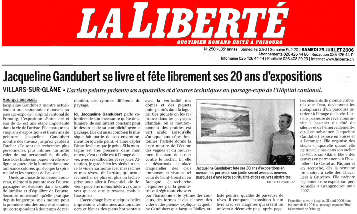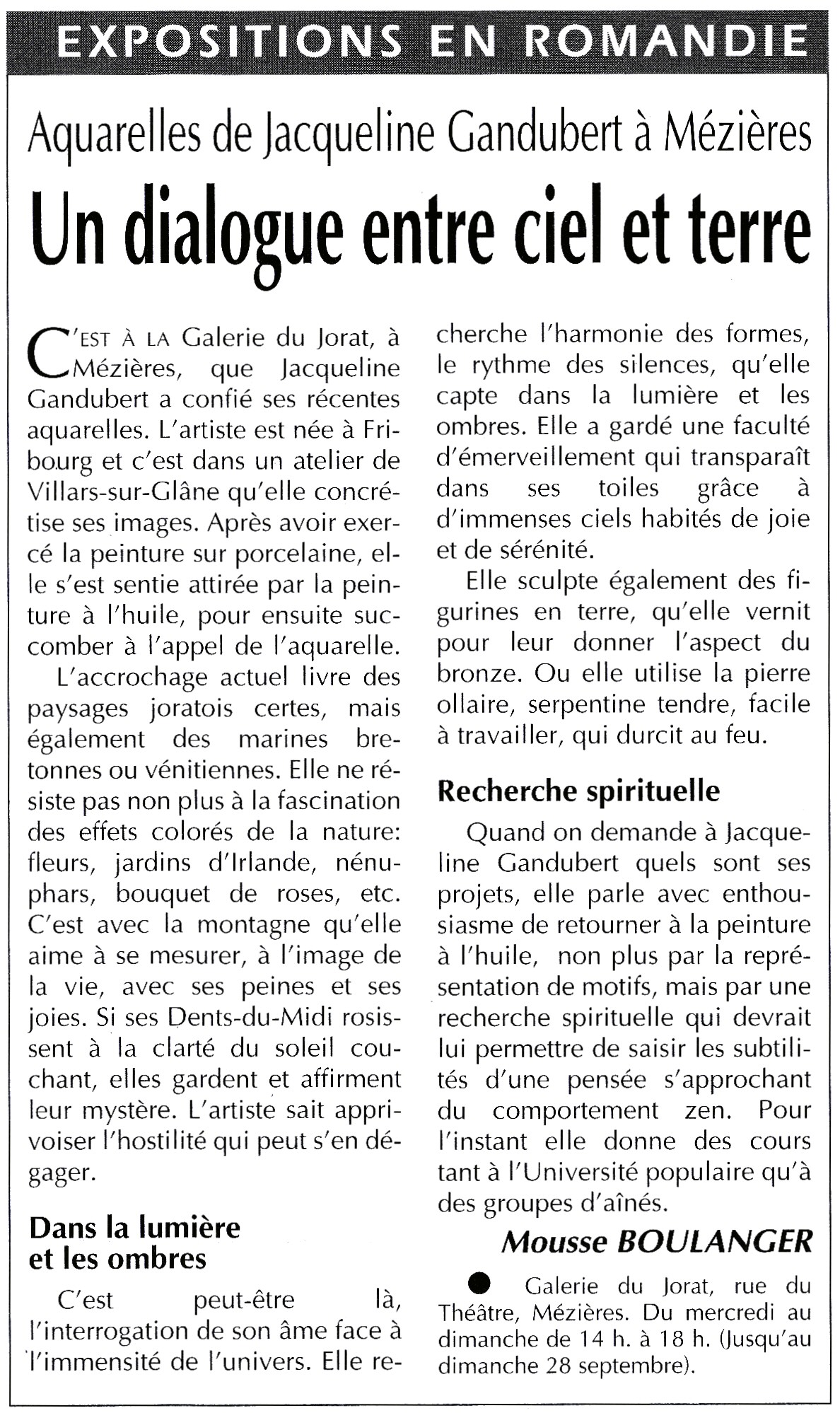 Aquarelles de Jacqueline Gandubert Exposition à la galerie du Jorat Un dialogue entre ciel et terre A la recherche de la lumière